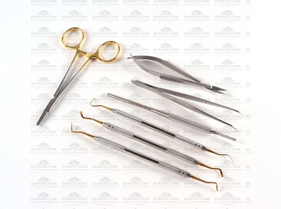 Scalpels, scissors, forceps, clamps and tractors are what a general surgery setup consists of to perform the basic surgeries. Dental kits include special mirrors, elevators and extraction items. Other specializations like neurosurgery, dermatology, gynecology and ophthalmology possess a set of well-selected tools.